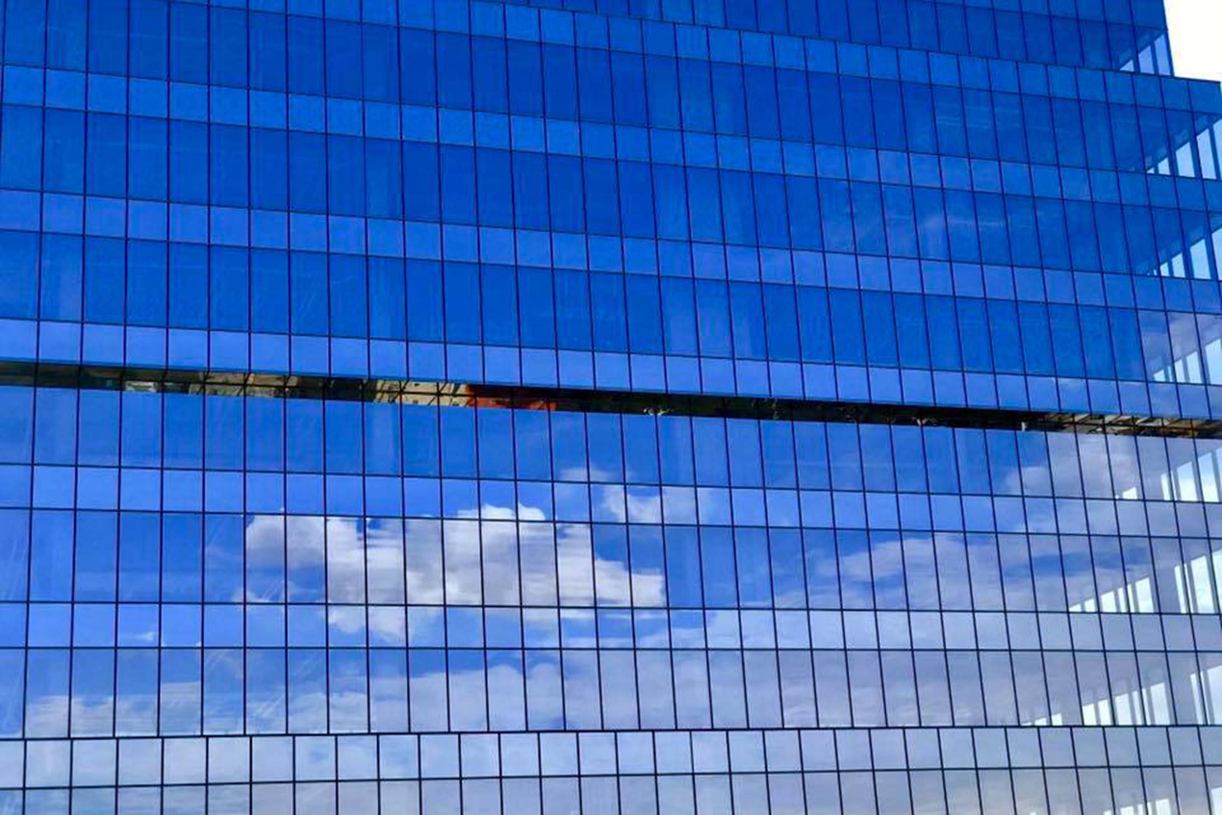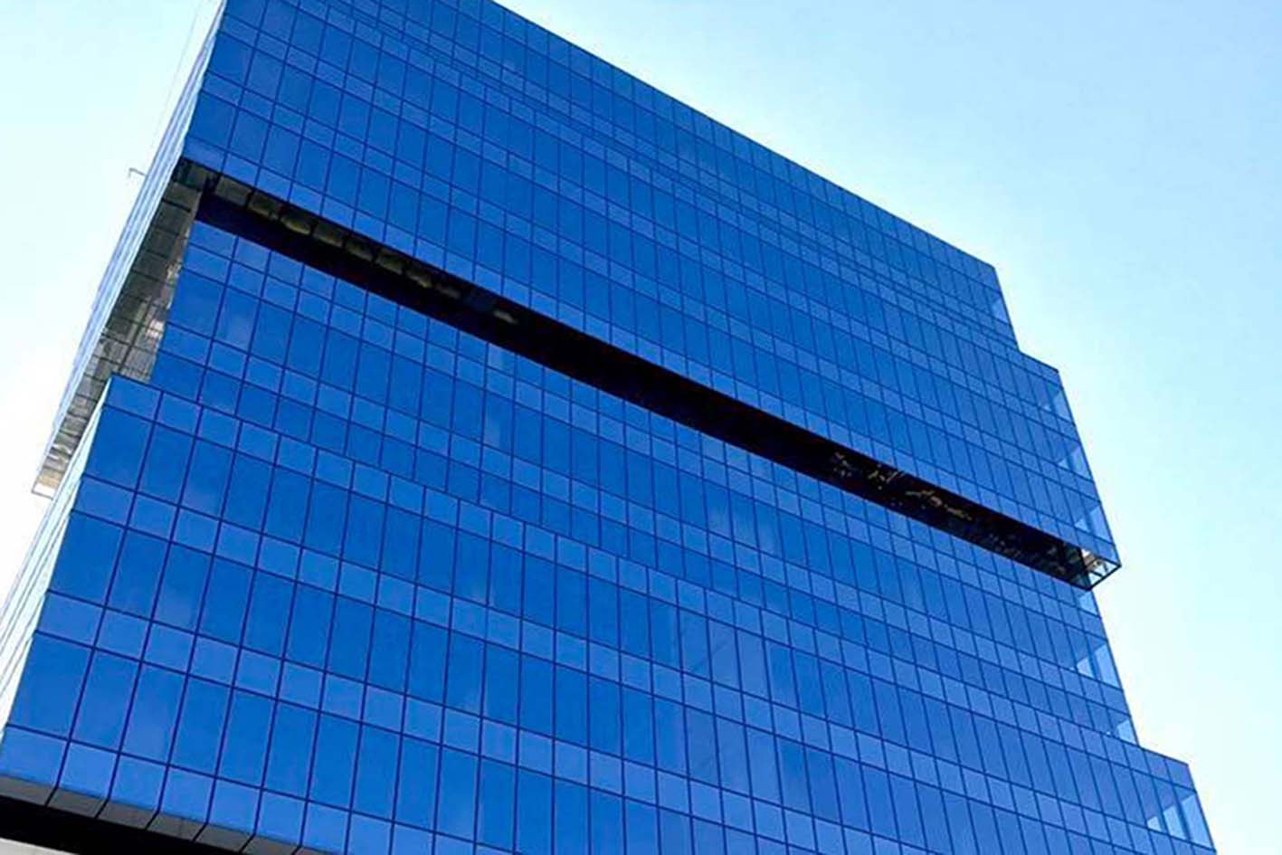 • La fachada en MURO CORTINA con estética SEMIESTRUCTURAL se calculó para resistir un impacto al viento de 3.900 P.a. Con ello, se realizaron los anclajes diseñados especialmente para ser sujetados a canto de forjado y ganar en RESISTENCIA, amplitud de espacio en línea de fachada y LUMINOSIDAD en el interior.