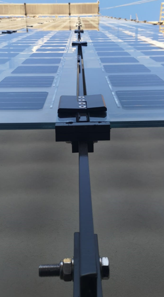 - Doble piel fotovoltaica en fachada posterior. Potencia instalada 32.697 Wp.